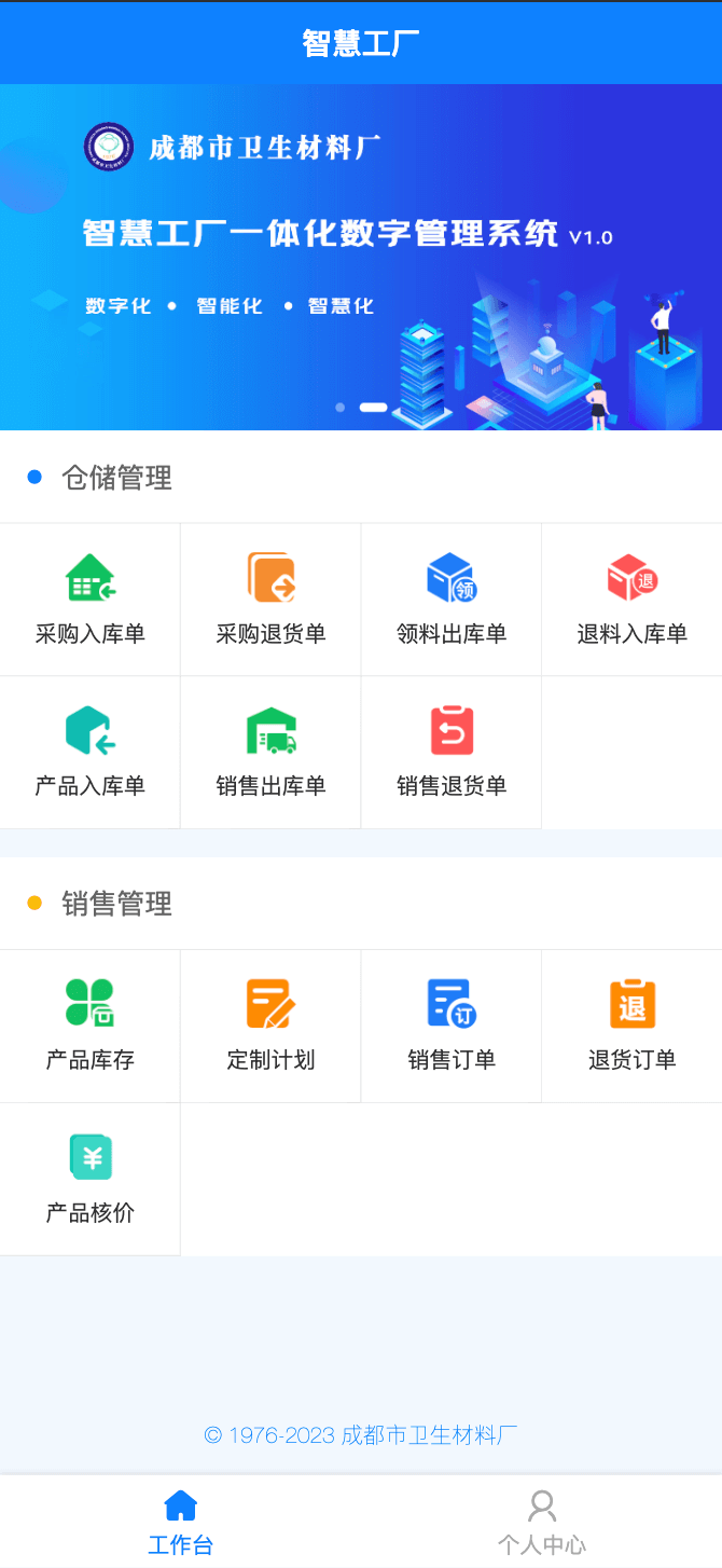 【成都市衛(wèi)生材料廠】智慧工廠一體化數字管理系統(tǒng)V1.0